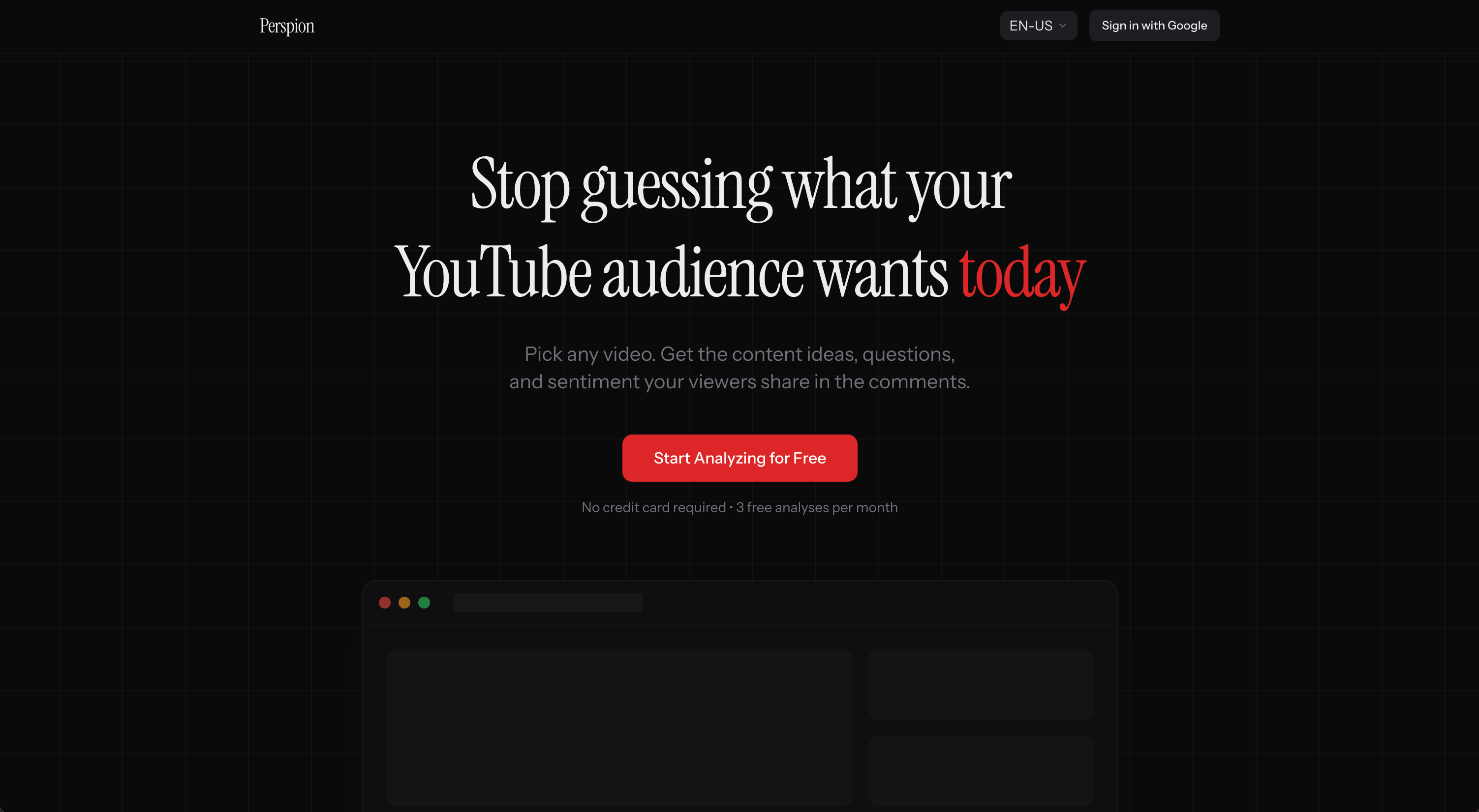 Perspion is live right now at perspion.whey.dev. Three free analyses and no credit card required. Point it at your channel and see what your audience has been trying to tell you.